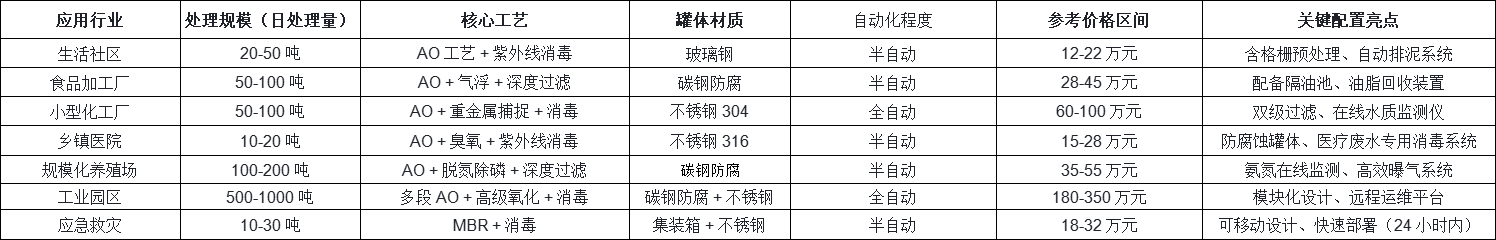 二、2025 年各行業(yè)污水處理設(shè)備細(xì)分報(bào)價(jià)表