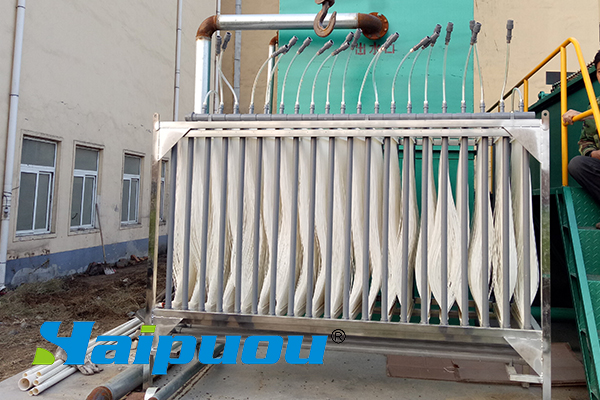 3、不能把膜組件做的很大,因?yàn)樘蟮哪そM件,其安裝密度就會(huì)大,同樣的攪拌空氣量對它來講卻顯不足,而且在膜片上積累很多包裹物的時(shí)候,就需要對膜片進(jìn)行噴洗,用高壓水槍或自來水,安裝太密會(huì)讓你很難沖到內(nèi)層膜片,建議單個(gè)膜組件處理量不要超過1.5m3/hr。