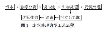 當前國內外對食品工業(yè)廢水的處理主要是生物處理,比較成熟的處理方法有厭氧接觸法、厭氧污泥床法、酵母菌生物處理法等,典型的處理流程如圖1所示。